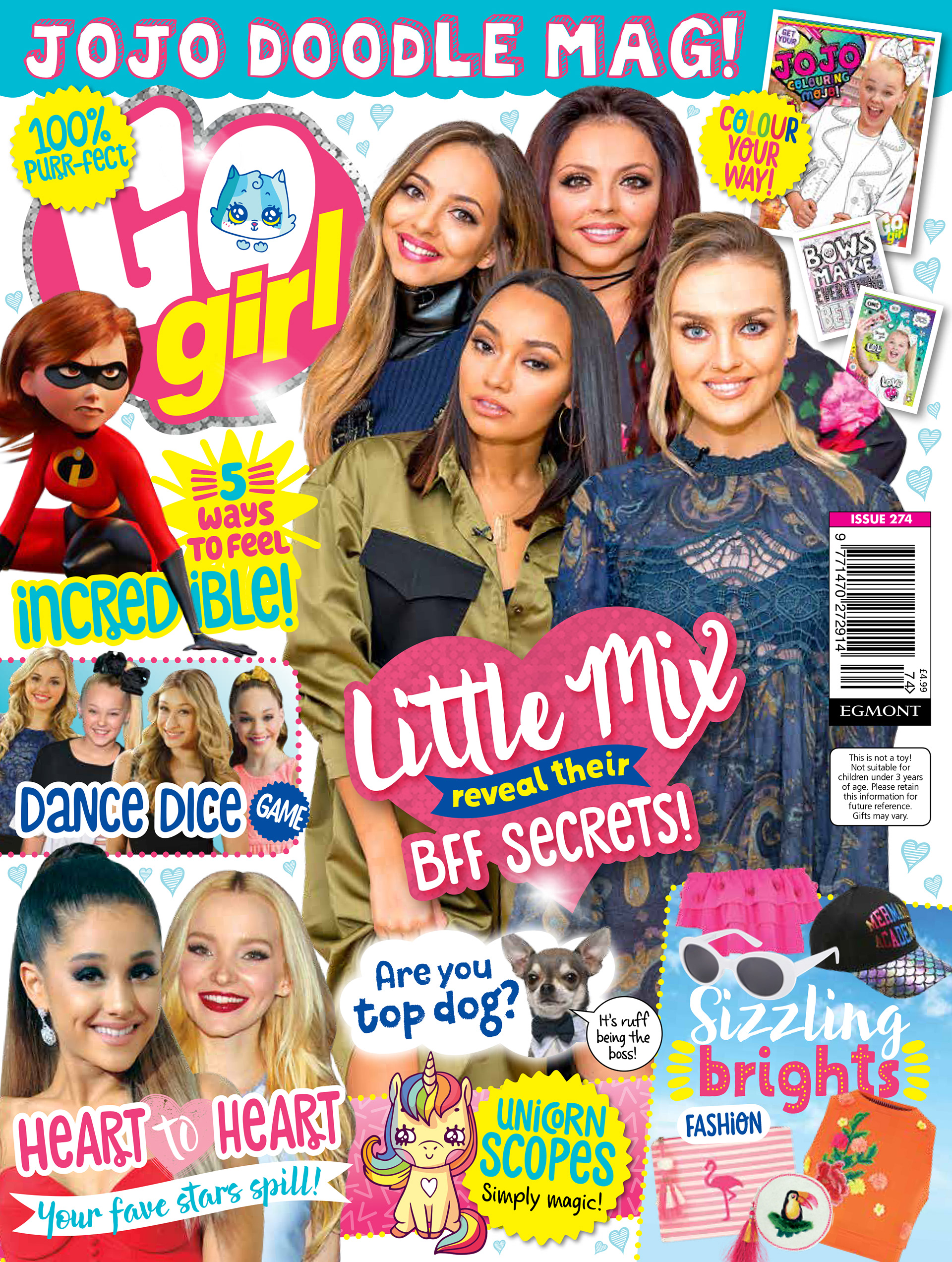 I design the covers and polybags of Go Girl, a monthly entertainment magazine for 7-12 year old girls. The magazine's style guide is based on my original ideas, which were further developed in-house.